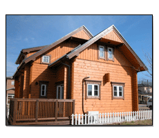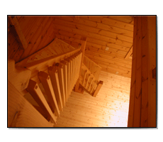 強度なログハウスだから玄関から 柱のない広々とした空間が生まれます。 |